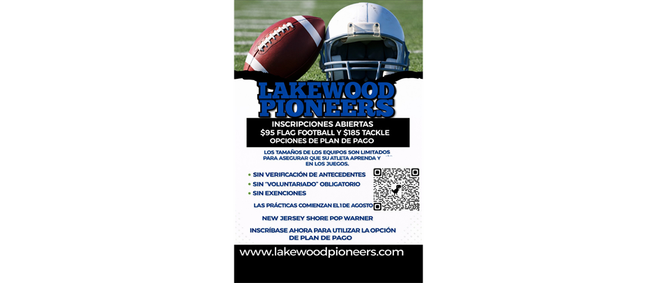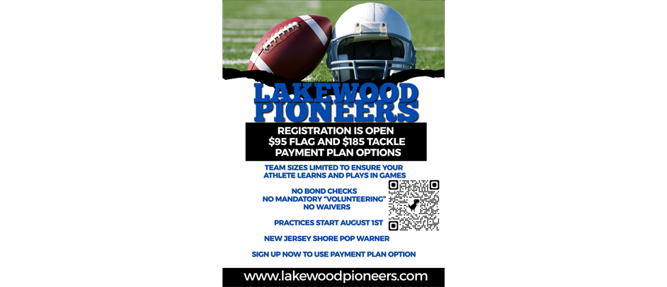 The New Jersey Shore Pop Warner Conference is excited to grow back into Lakewood, NJ as the Pioneers for both flag and tackle football for the 2026 season.